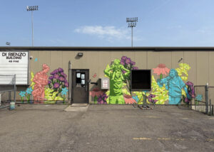 This mural was one of 16 mural projects funded by Smart Energy Choices and Ithaca Murals in the Southern Tier of New York. The projects funded by the Thriving Futures Mural Initiative all revolved around the theme, “Building a future where all people and living environments thrive,” and half of the awards were designated to first time muralists like Mia Hause.